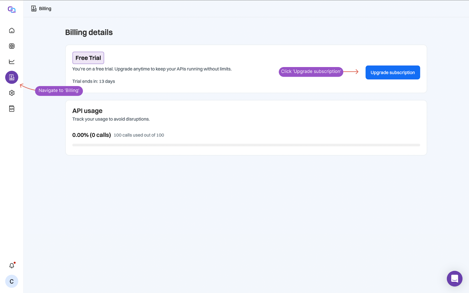 If you need help estimating usage or setting a top-up threshold, reach out to our support team anytime in the bottom right corner of your screen.