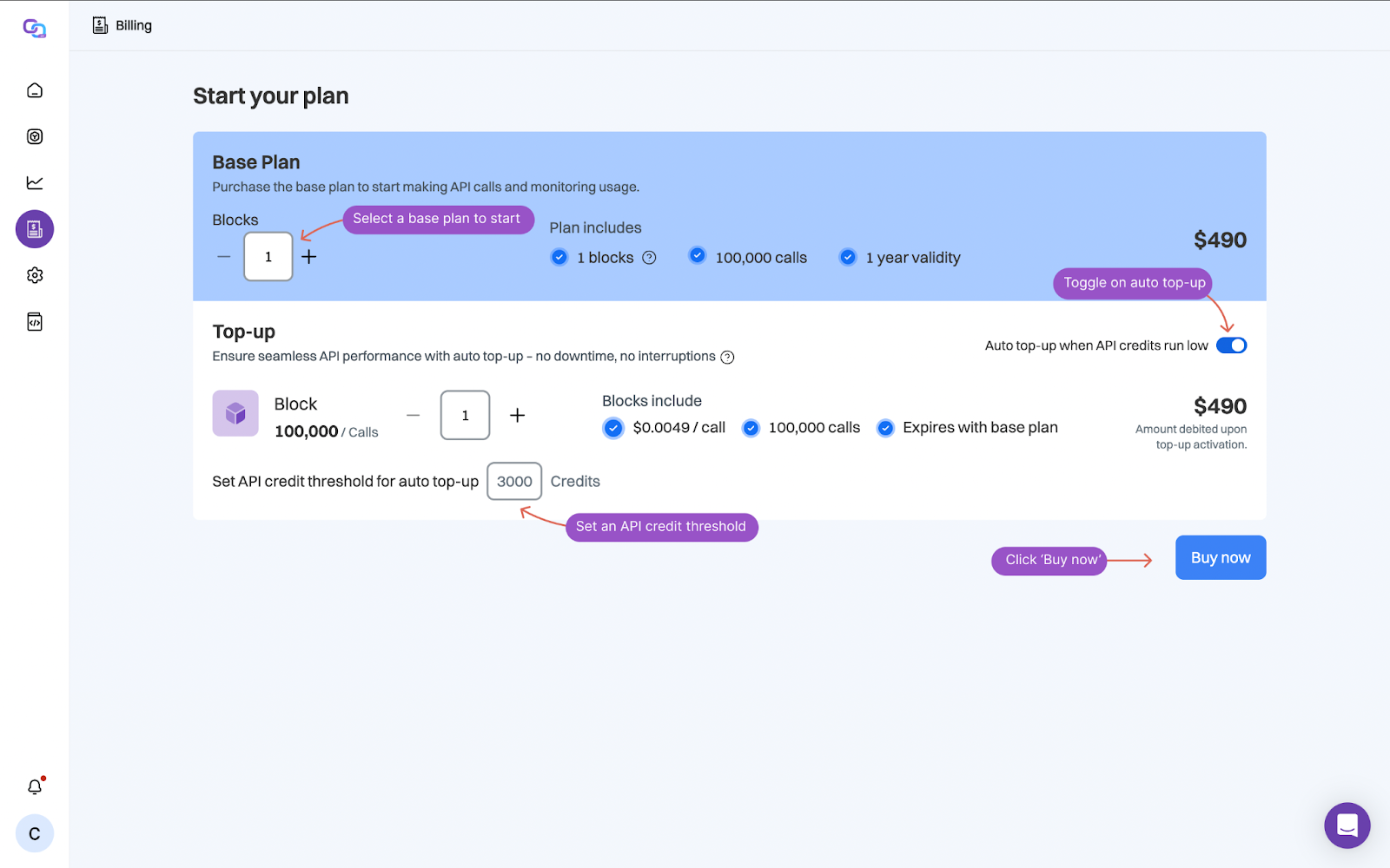To avoid interruptions, you can enable auto top-up. This feature automatically adds new blocks of credits when your balance drops below a threshold you define. In this guide, we’ll walk you through how to set up auto top-up and ensure your API usage continues without delay.