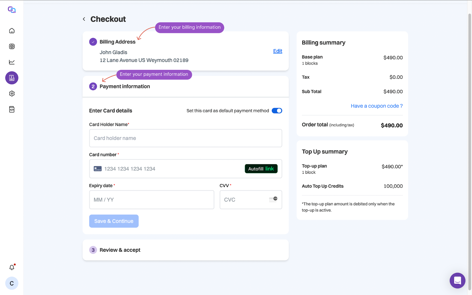 If you want to avoid interruptions, you can also enable auto top-up during this step. Learn how to set that up here.