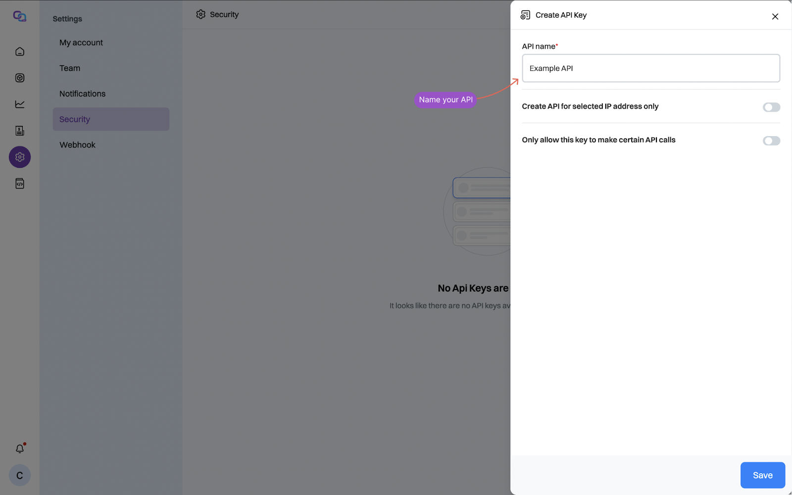Give your API key a clear name so you can easily identify it later. This is especially useful if you're managing multiple integrations or environments.